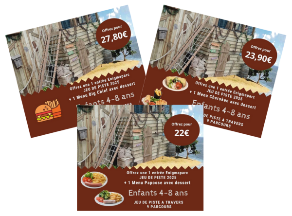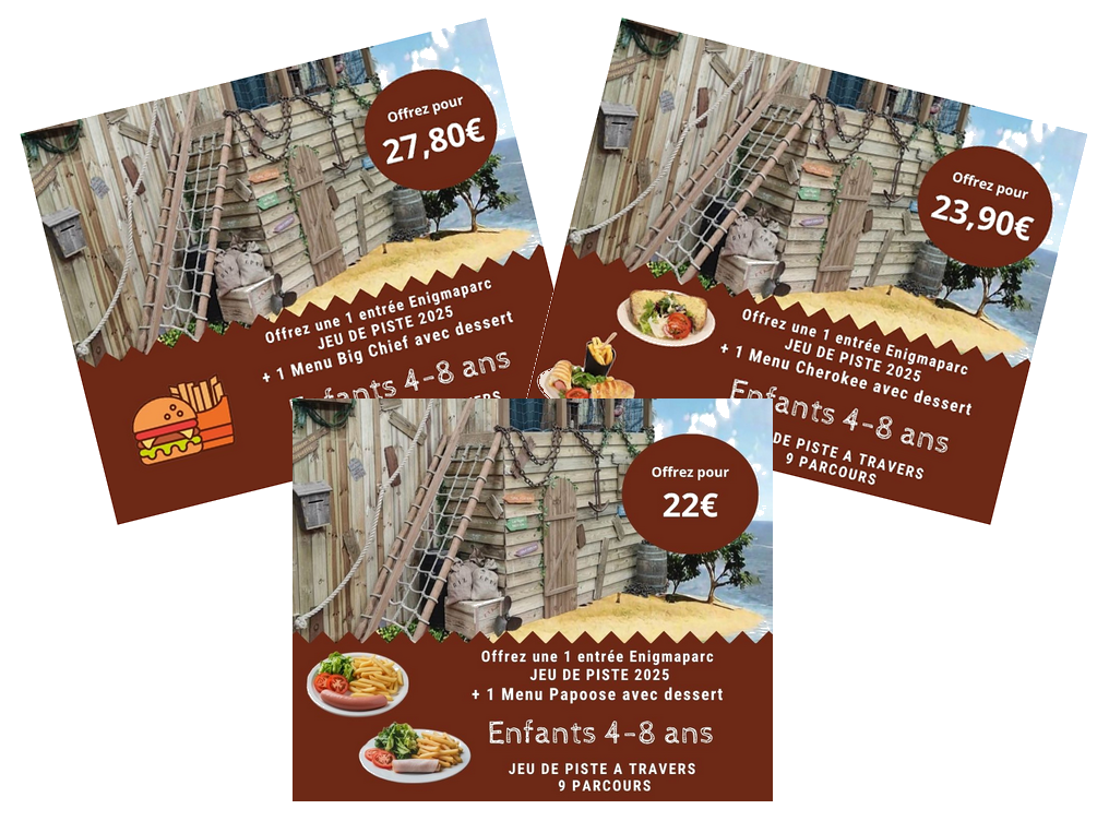 Jeu de Piste + repas | Jeu de Piste + Menu Big Chief, Jeu de Piste + Menu Cherokee, Jeu de Piste + Menu Papoose |